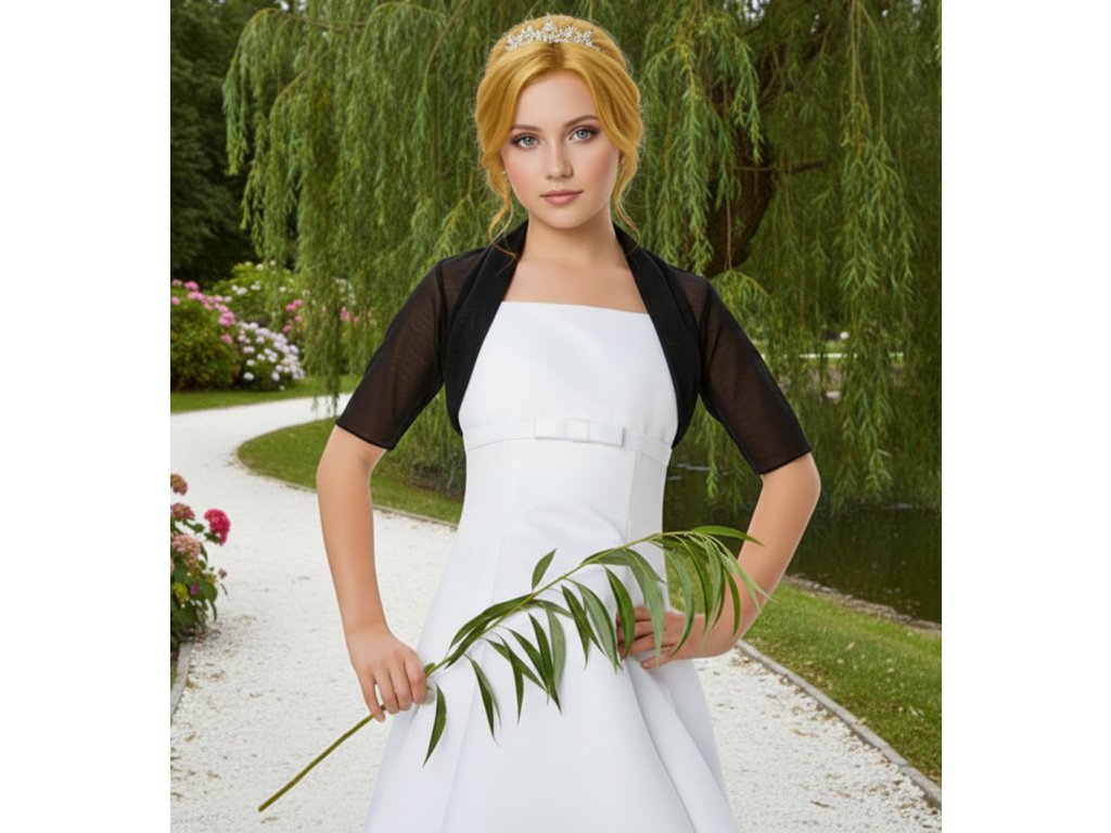Dětské bolerko z pružného tylu s krátkým rukávem.