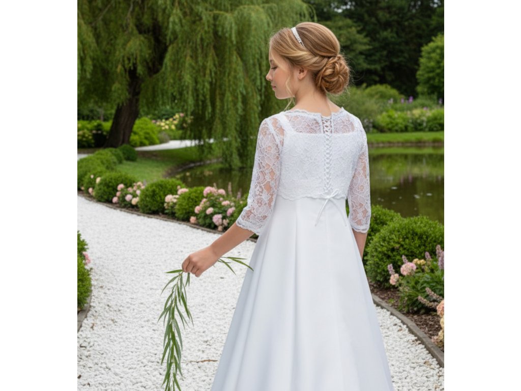 Dětský svatební kabátek z květinové krajky.