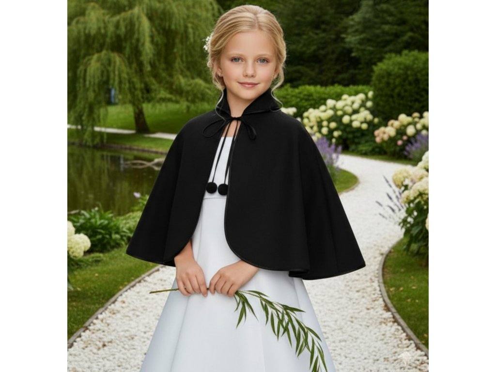 › Dětské doplňky › Dětská bolerka a pelerínky › Elegantní dětská pelerínka lemovaná saténem DFK-175