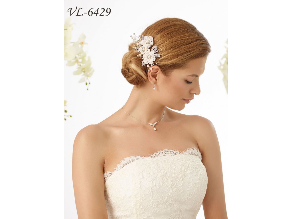 › Doplňky do vlasů na svatbu › Svatební květy kanzashi do vlasů s perličkami a krystaly: VL-6429