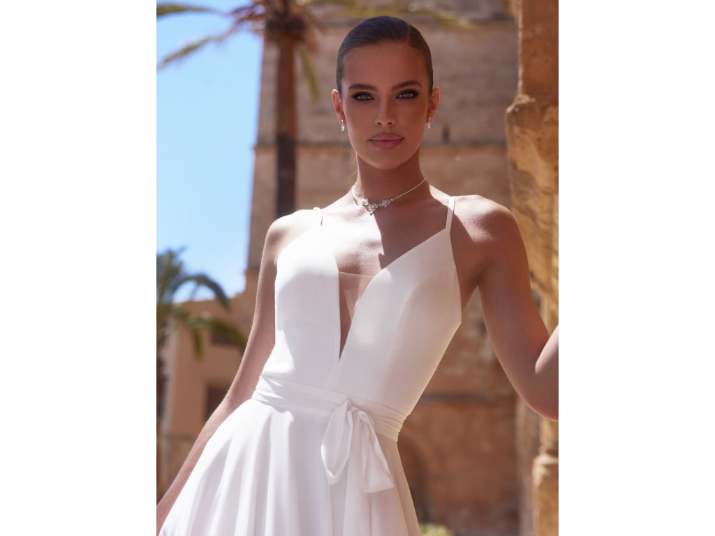 Svatební top je vyrobený z luxusního, lehce elastického krep saténu.