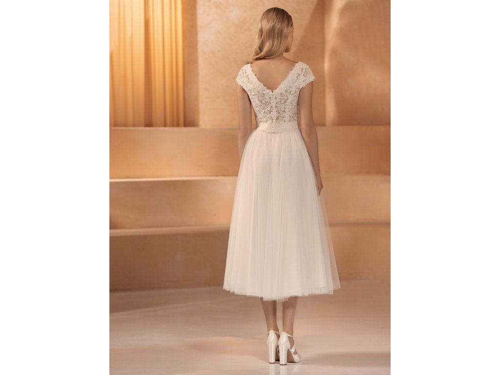 Svatební top je vyrobený z luxusní květinové krajky zdobené jemnými třpytkami.