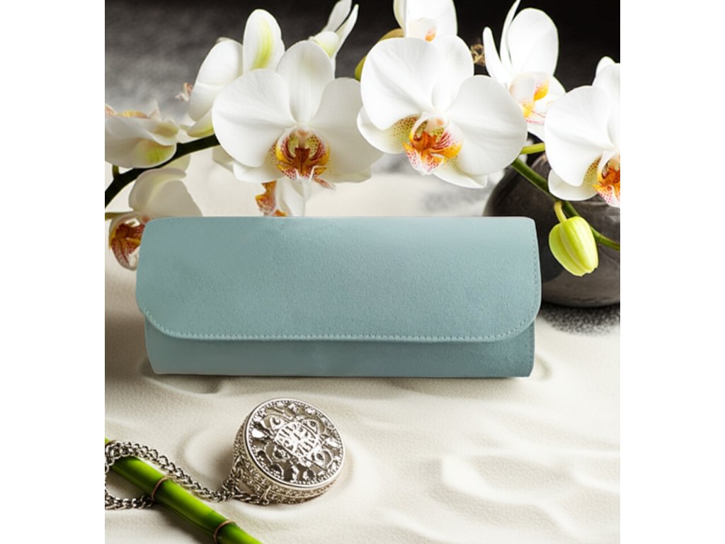 › Svatební kabelky a pompadurky › Kabelky pro maminky a družičky - MALÉ › Semišová kabelka na svatbu psaníčko - mentolová