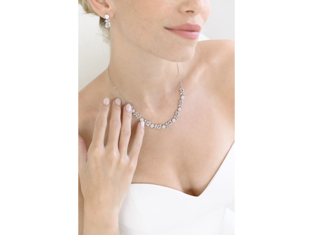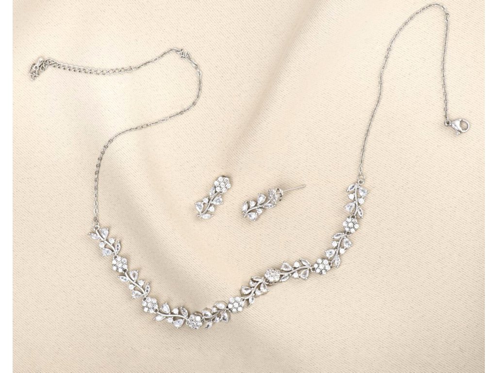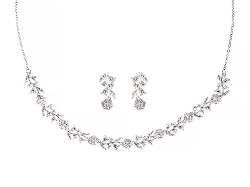 Květinová svatební sada šperků - náušnic a náhrdelníku, zdobená kurbickými zirkony.