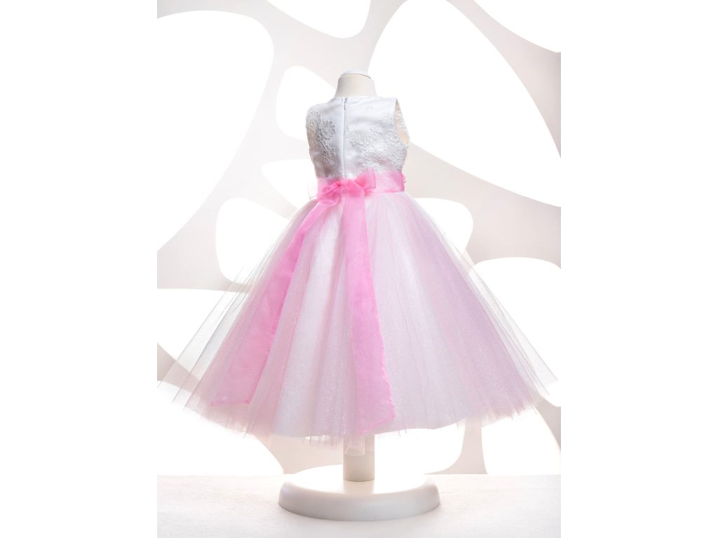 Dětské šaty pro družičku, s růžovou sukní.
