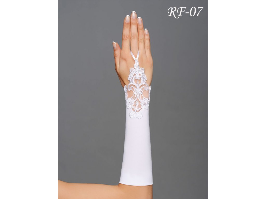 Saténové svatební rukavice s krajkou RF-07