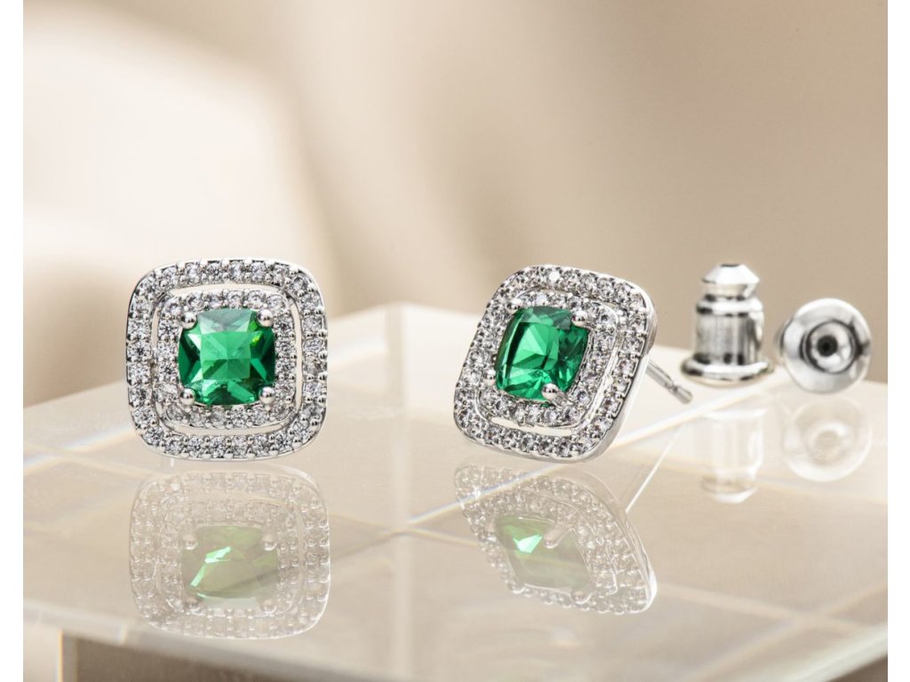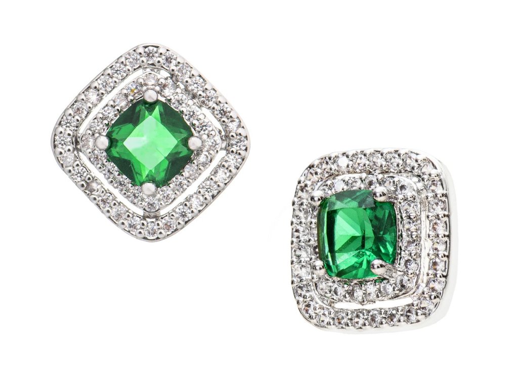 Elegantní čtvercové náušnice, zdobené smaragdovými kubickými zirkony.