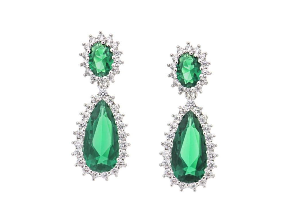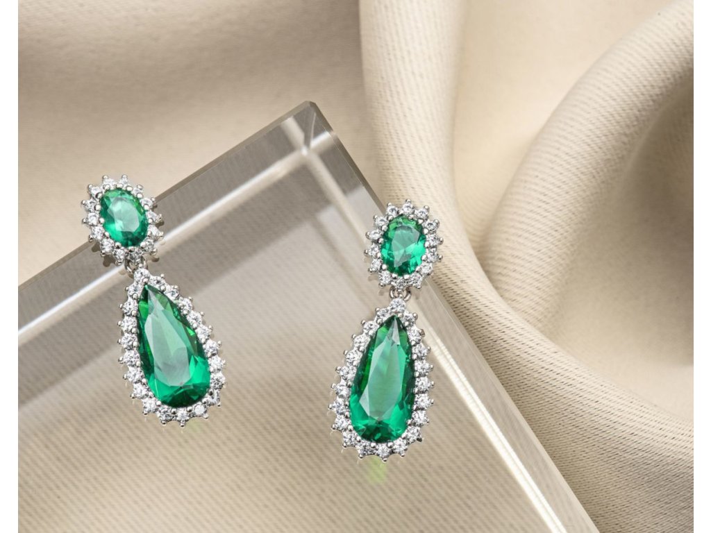 Elegantní visací náušnice, zdobené smaragdovými kubickými zirkony.
