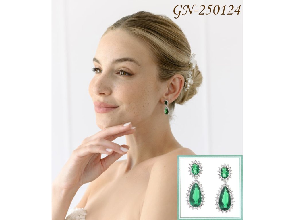 › Svatební bižuterie GLAMOUR › Visací náušnice se smaragdovými zirkony: GN-250124