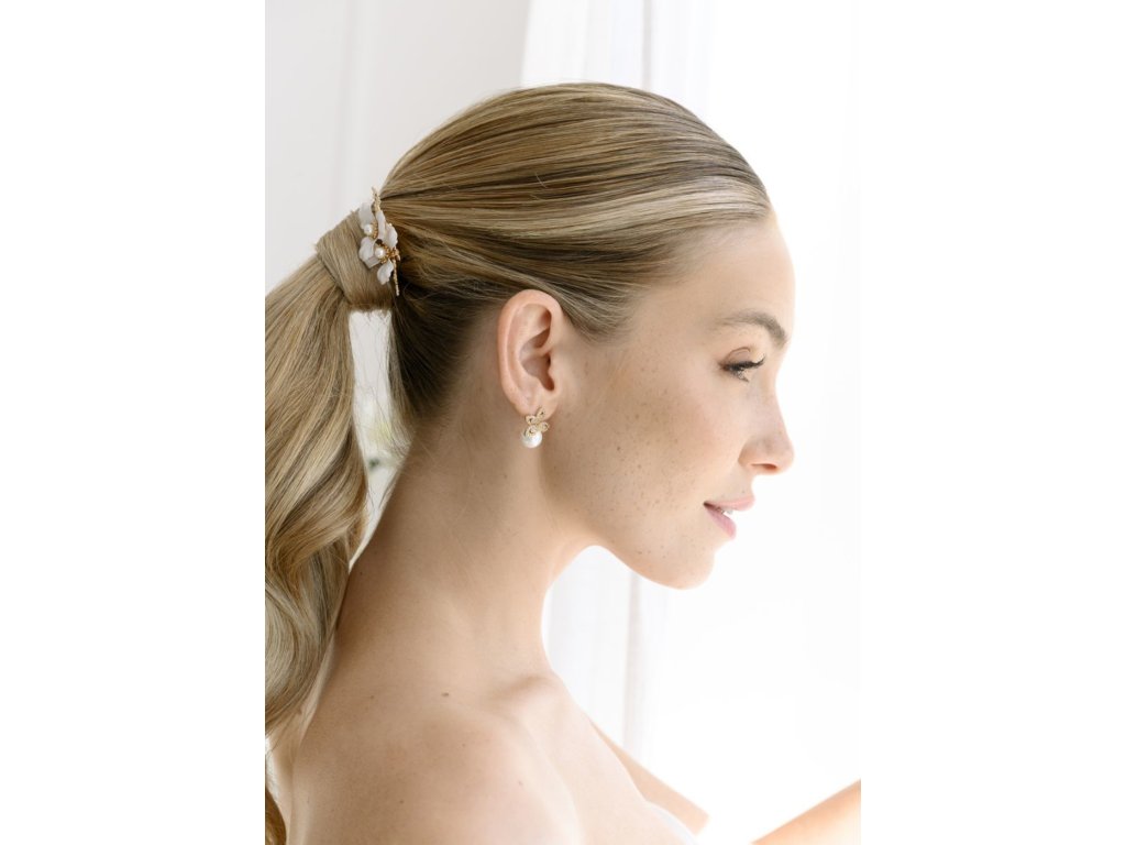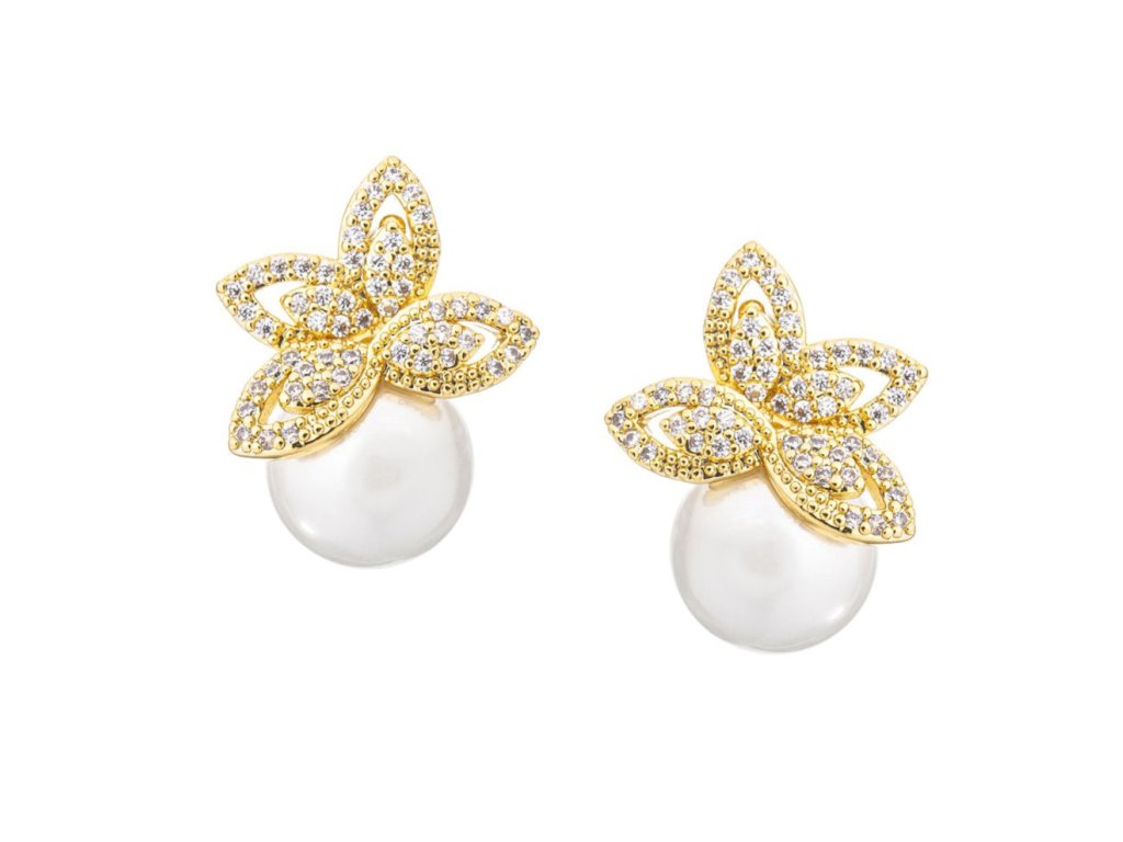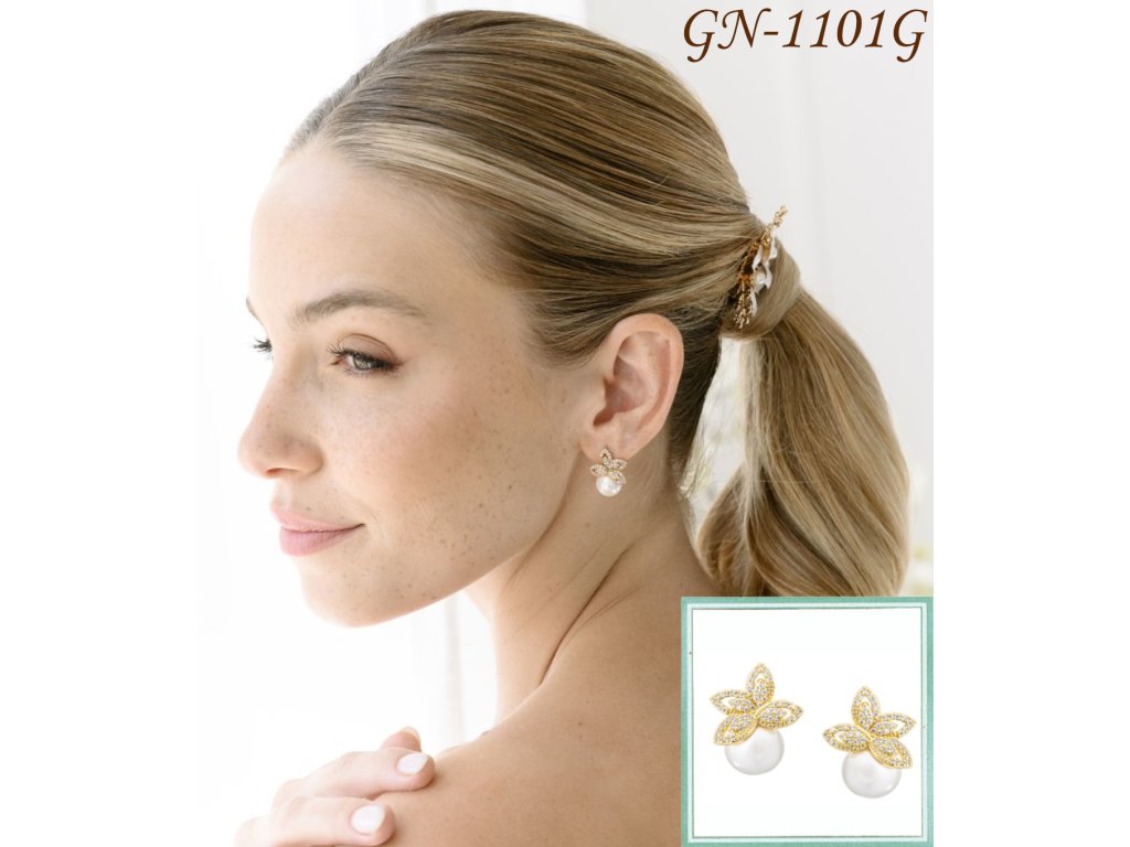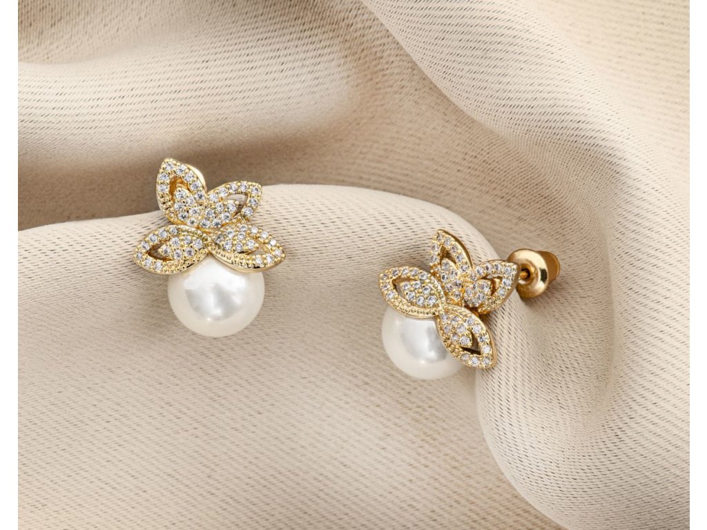 › Svatební bižuterie GLAMOUR › Zlaté perlové svatební náušnice se zirkony: GN-1101G