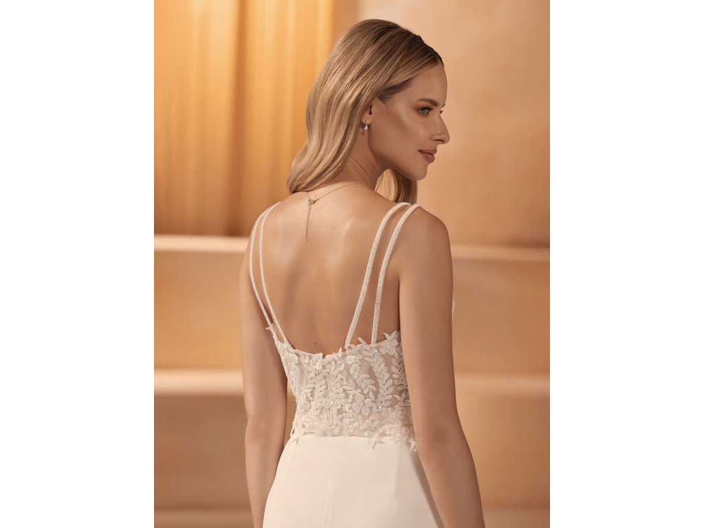 Jemně třpytivý krajkový svatební top BL-440
