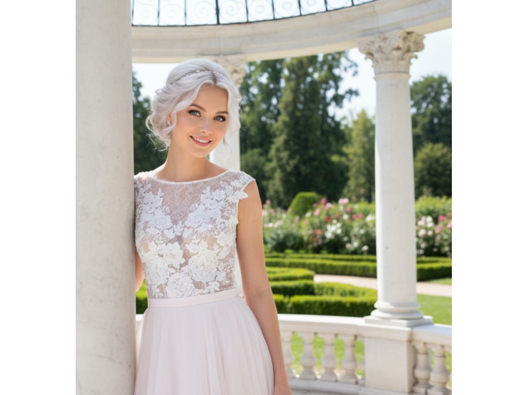 Krajkové svatební body s květinovou aplikací WB-18, vel. S