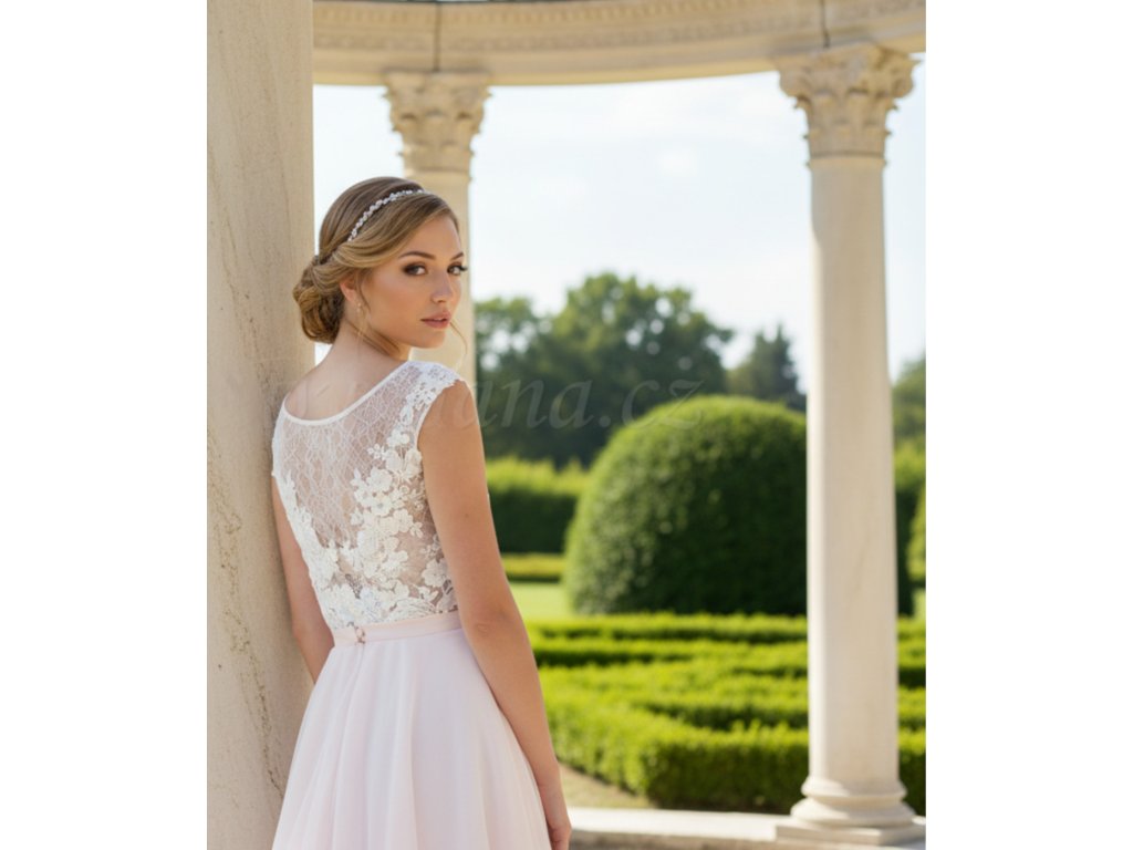 Krajkové svatební body s květinovou aplikací.