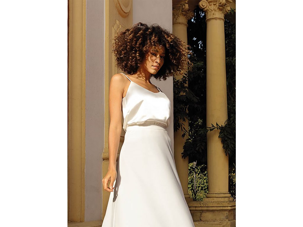 Saténový svatební top se špagetovými ramínky.