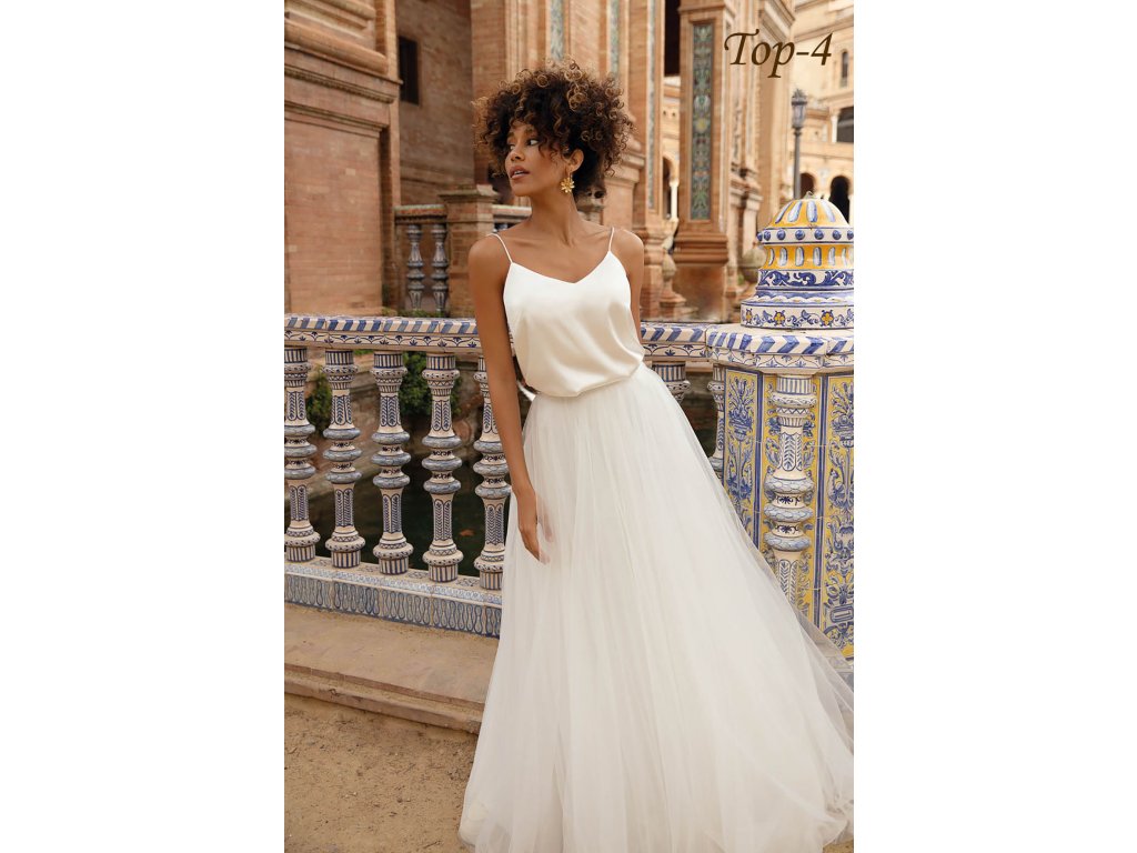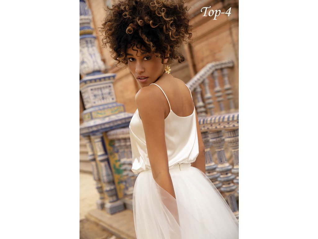 Saténový svatební top na ramínka: Top-4 bílý/ivory, vel. S, M