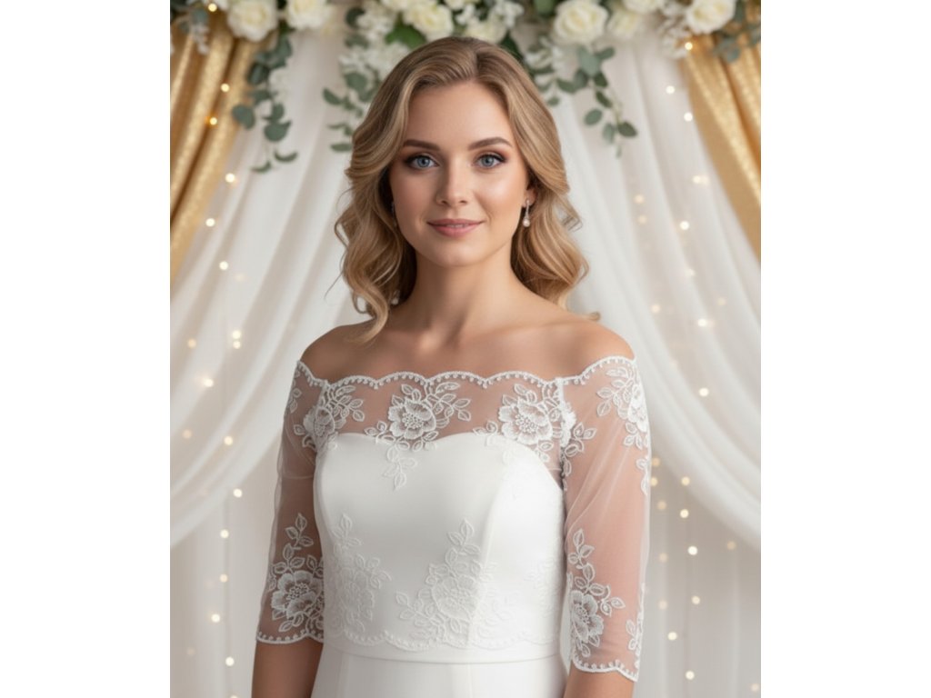 Jemné svatební bolerko vyšívané květy.