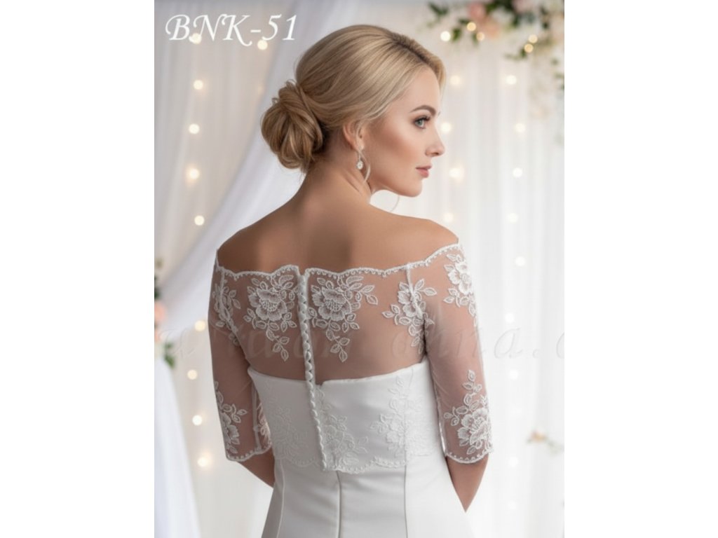 › Svatební bolerka › Jemné svatební bolerko vyšívané květy, ivory BNK-51, vel. S, M, L