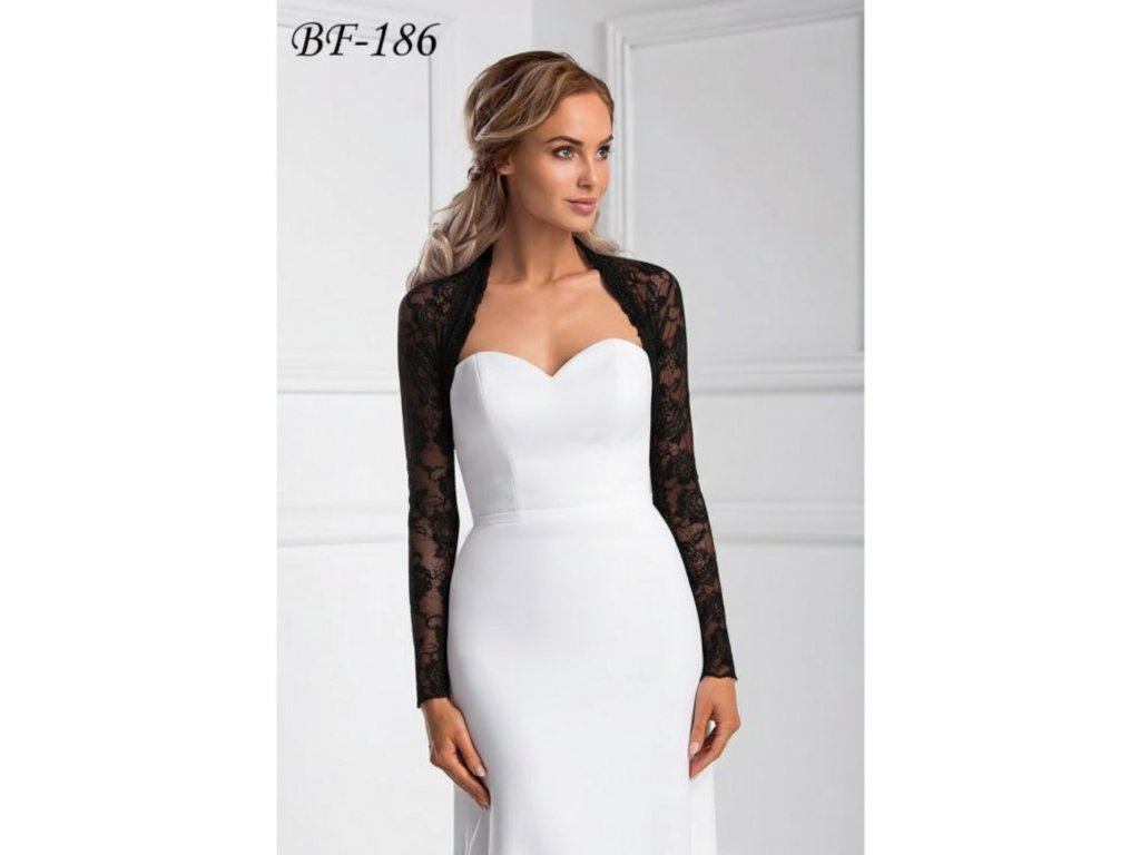 › Svatební bolerka › Krajkové bolerko s dlouhým rukávem - černé: BF-186