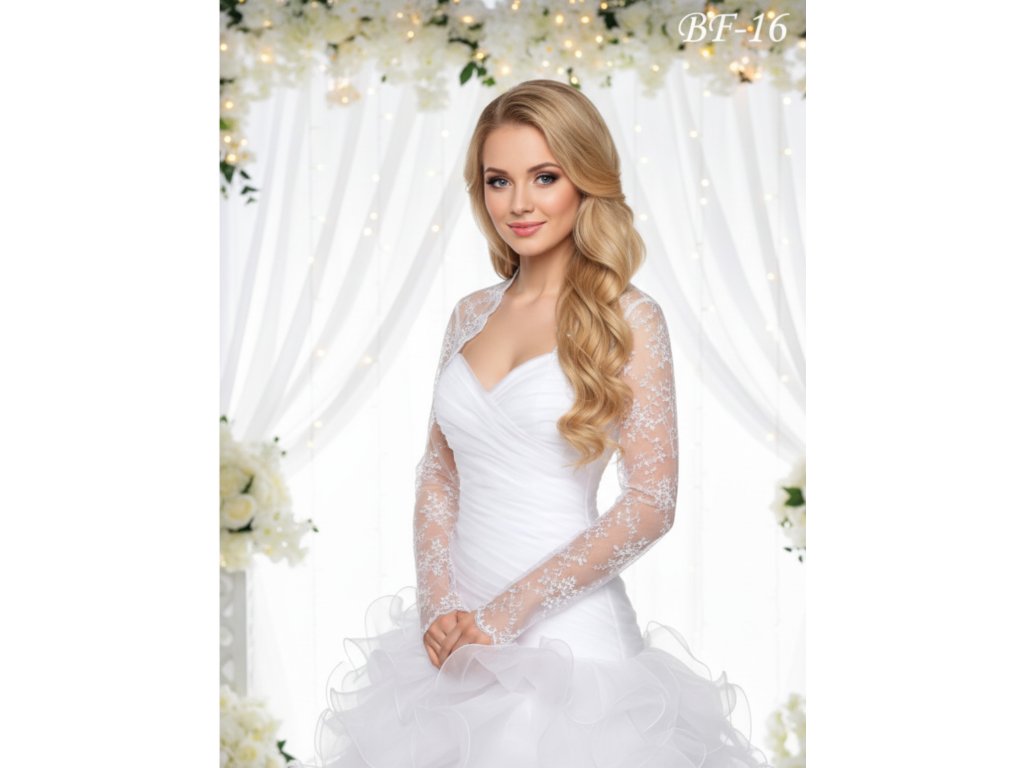 Krajkové svatební bolerko s dlouhým rukávem.