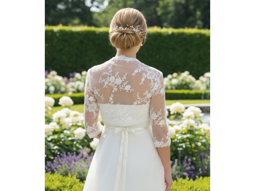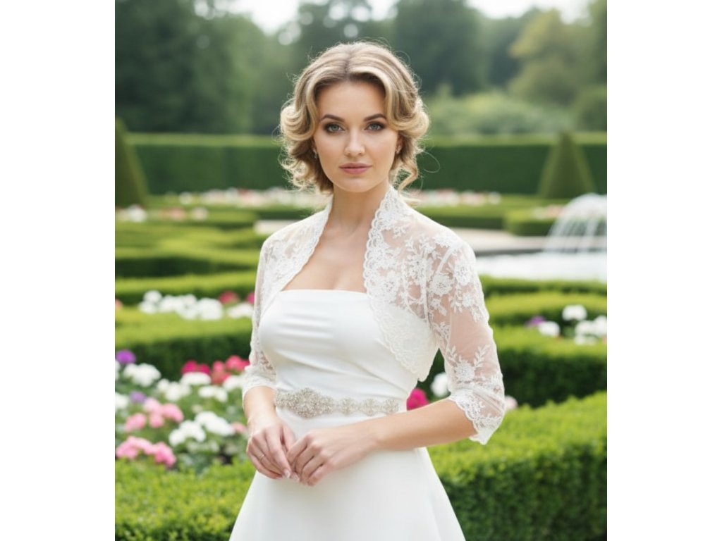 Svatební bolerko je dostupné ve velikostech 34 - 46.