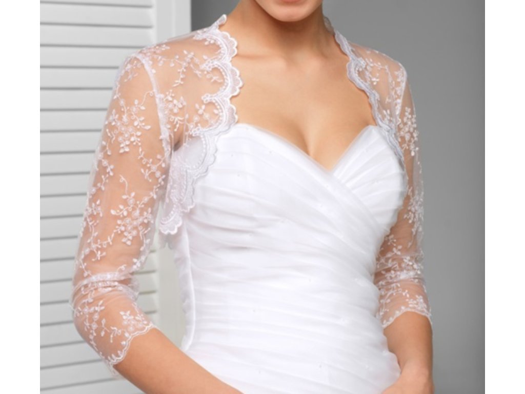 Krajkové svatební bolerko s 3/4 rukávem.