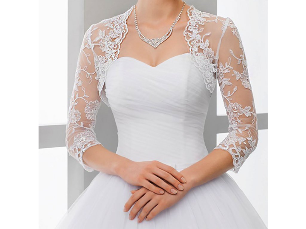 Krajkové svatební bolerko s 3/4 rukávem - ivory: BF-154