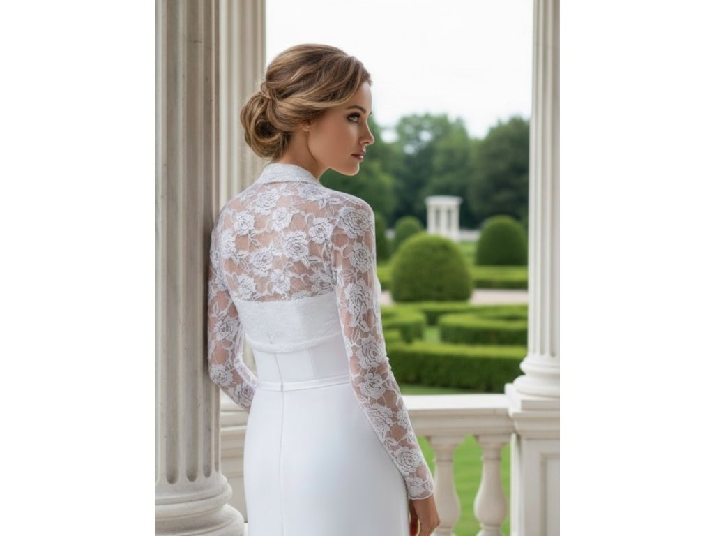 Krajkové svatební bolerko s dlouhým rukávem.