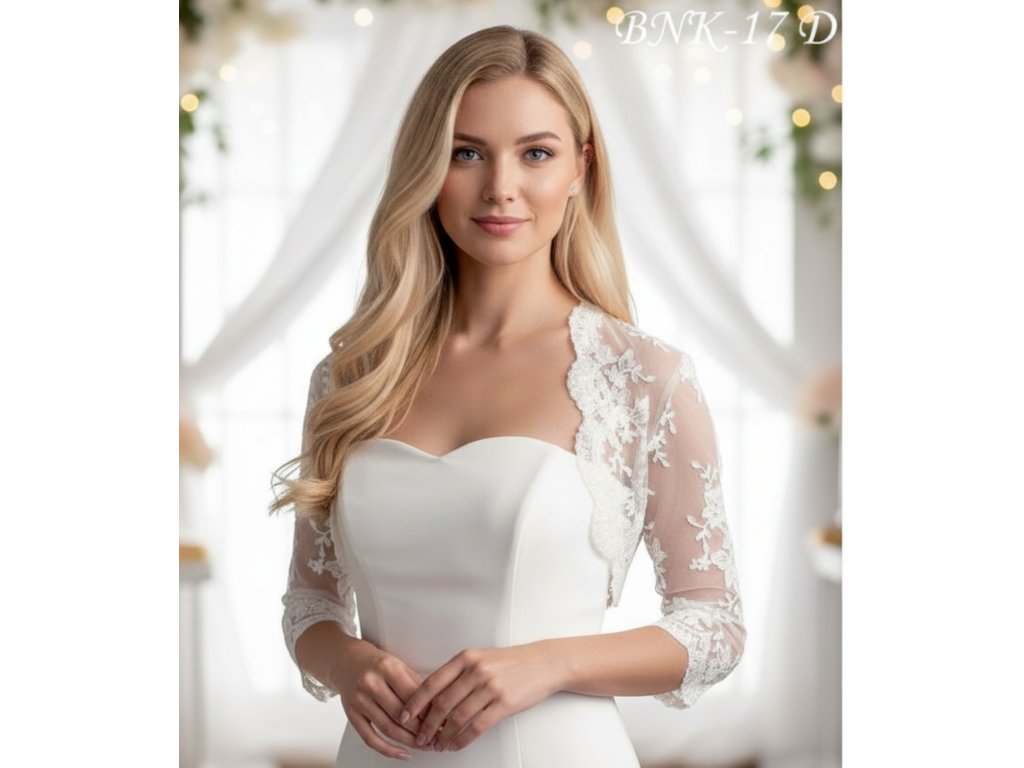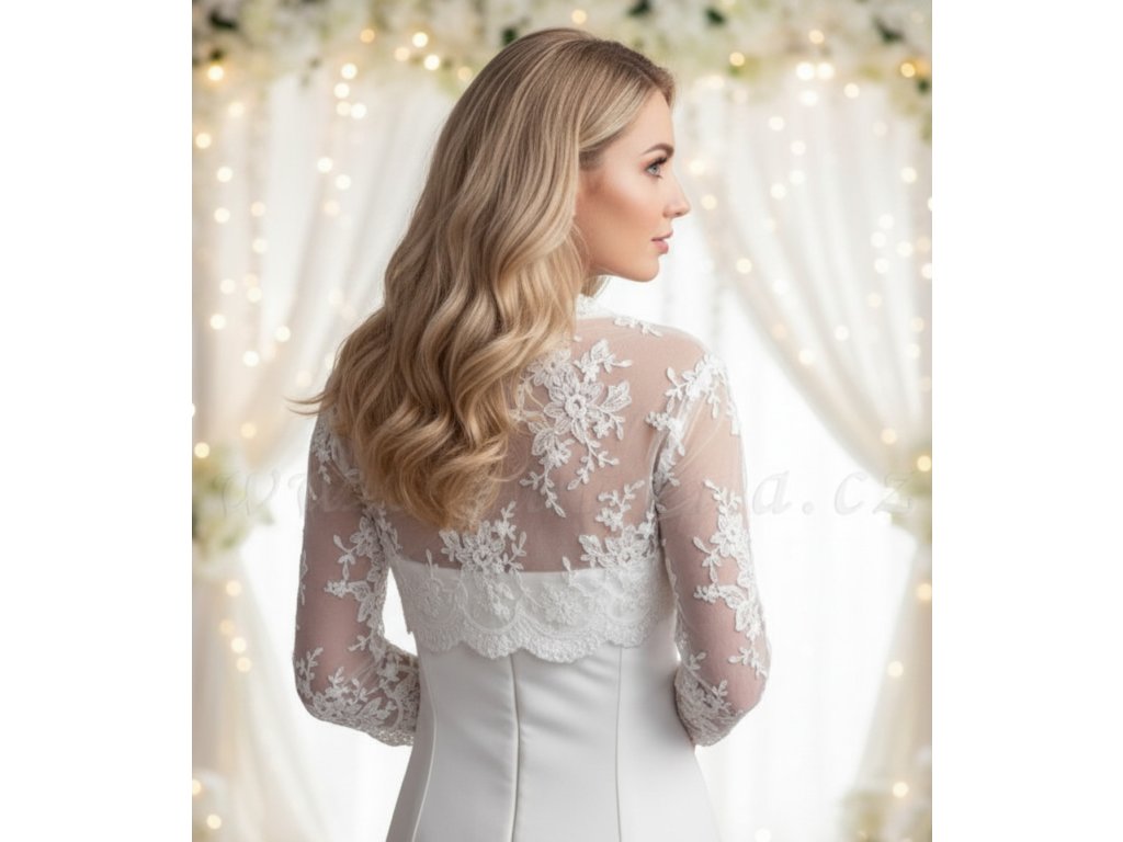 Krajkové svatební bolerko vyšívané třpytivými korálky.