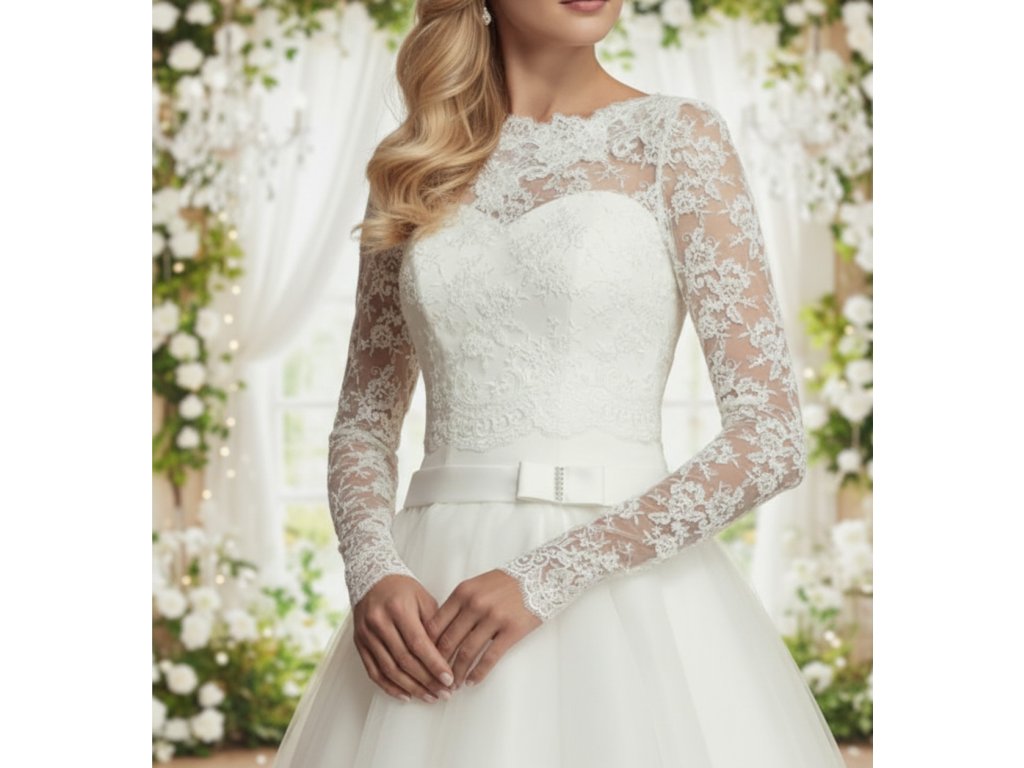 › Svatební bolerka › Krajkový květinový svatební kabátek - bílý: B-911, vel. 3XL