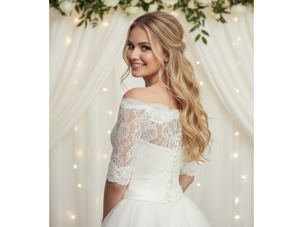 › Svatební bolerka › Krajkový svatební kabátek - ivory: B-904, vel. L