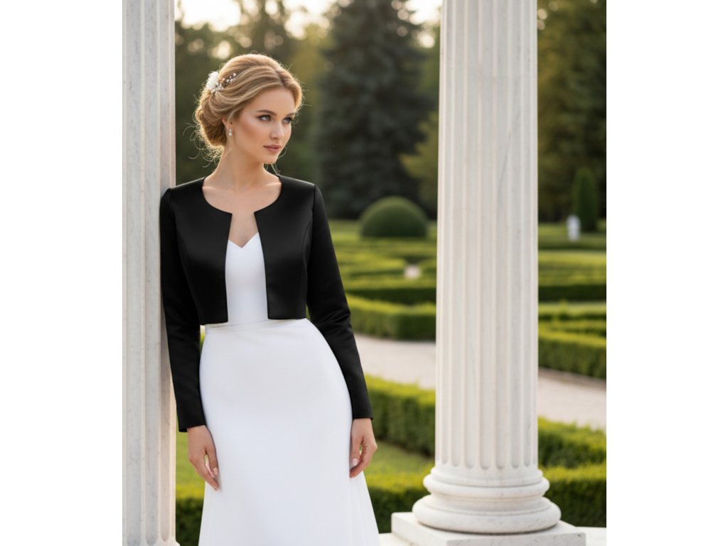 › Svatební bolerka › Krátký saténový kabátek - černý: BF-198