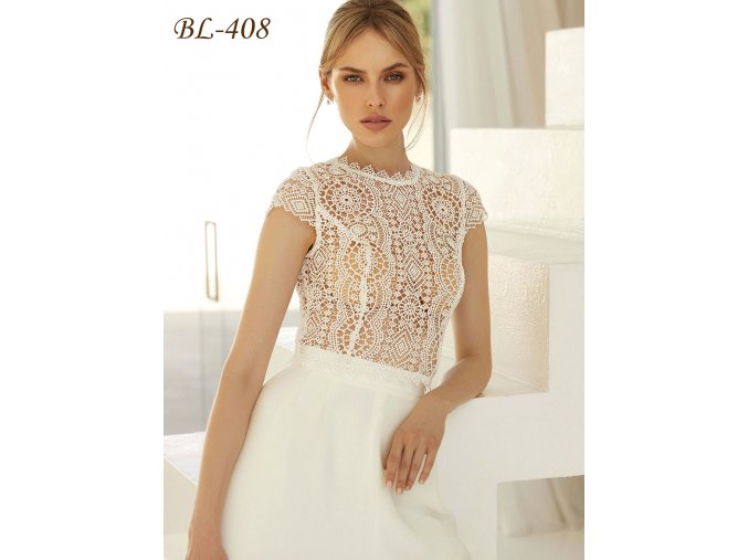 › Svatební bolerka › Luxusní krajkový top na svatbu - ivory: BL-408