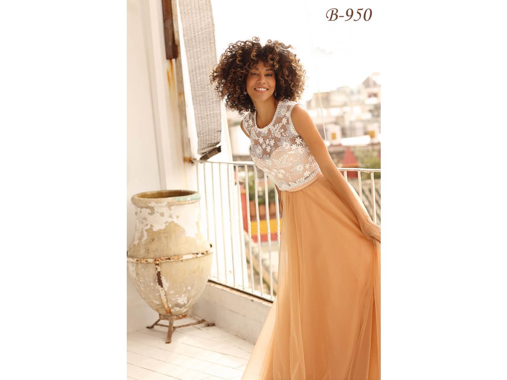 Luxusní květinový svatební crop top - ivory: B-950, vel. L
