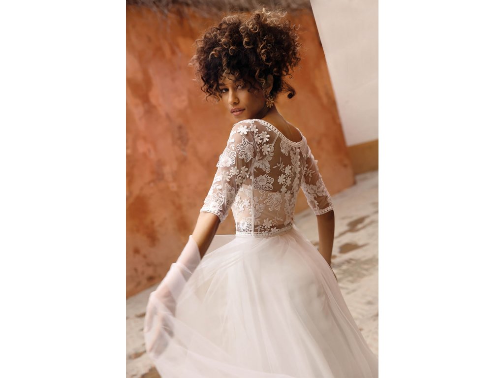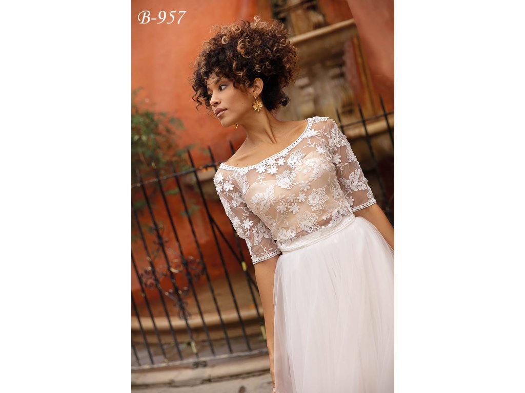 Luxusní květinový svatební top - ivory: B-957, vel. M, L
