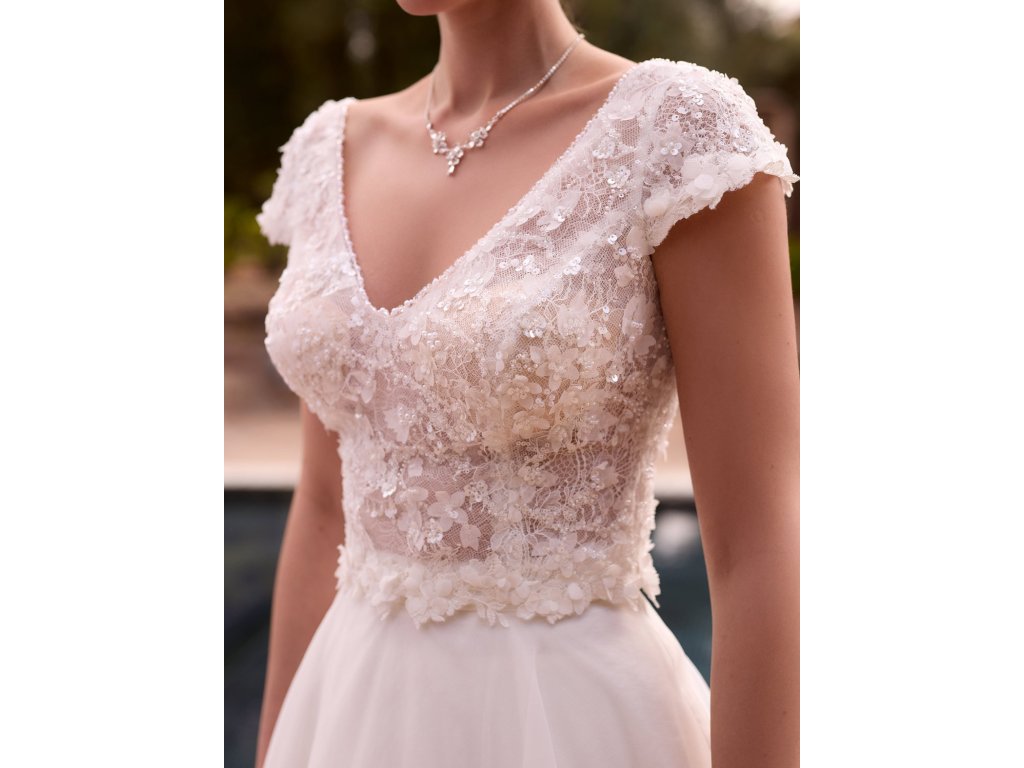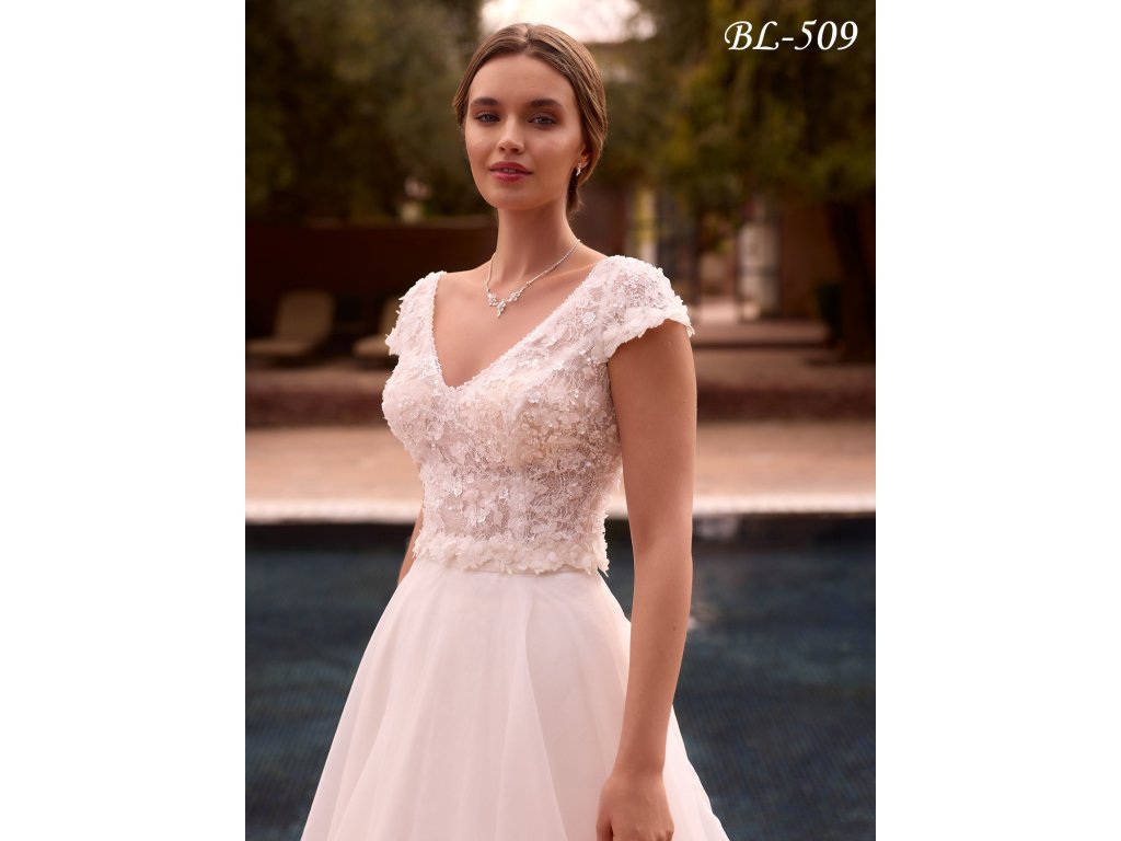 › Svatební bolerka › Luxusní svatební top zdobený květy - ivory: BL-509