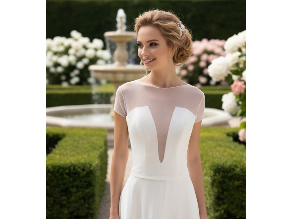 Svatební bolerko z pružného tylu s krátkým rukávem.