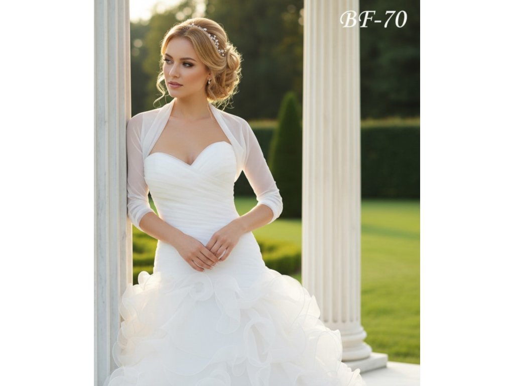 Svatební bolerko je dostupné ve velikosti: S/M, L/XL, 2XL/3XL a 4XL/5XL.