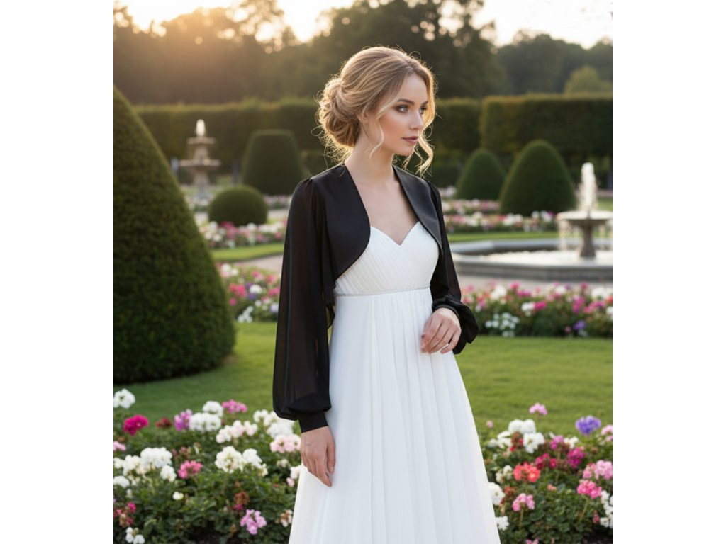 Saténové bolerko na šaty, s mušelínovými šifonovými rukávy.