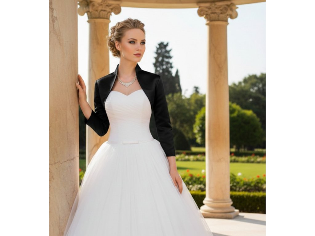 › Svatební bolerka › Saténové bolerko s 3/4 rukávem - černé: BF-160