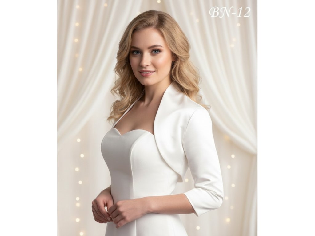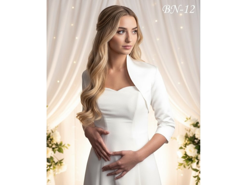 › Svatební bolerka › Saténové svatební bolerko, bílé BN-12 - vel. M a L