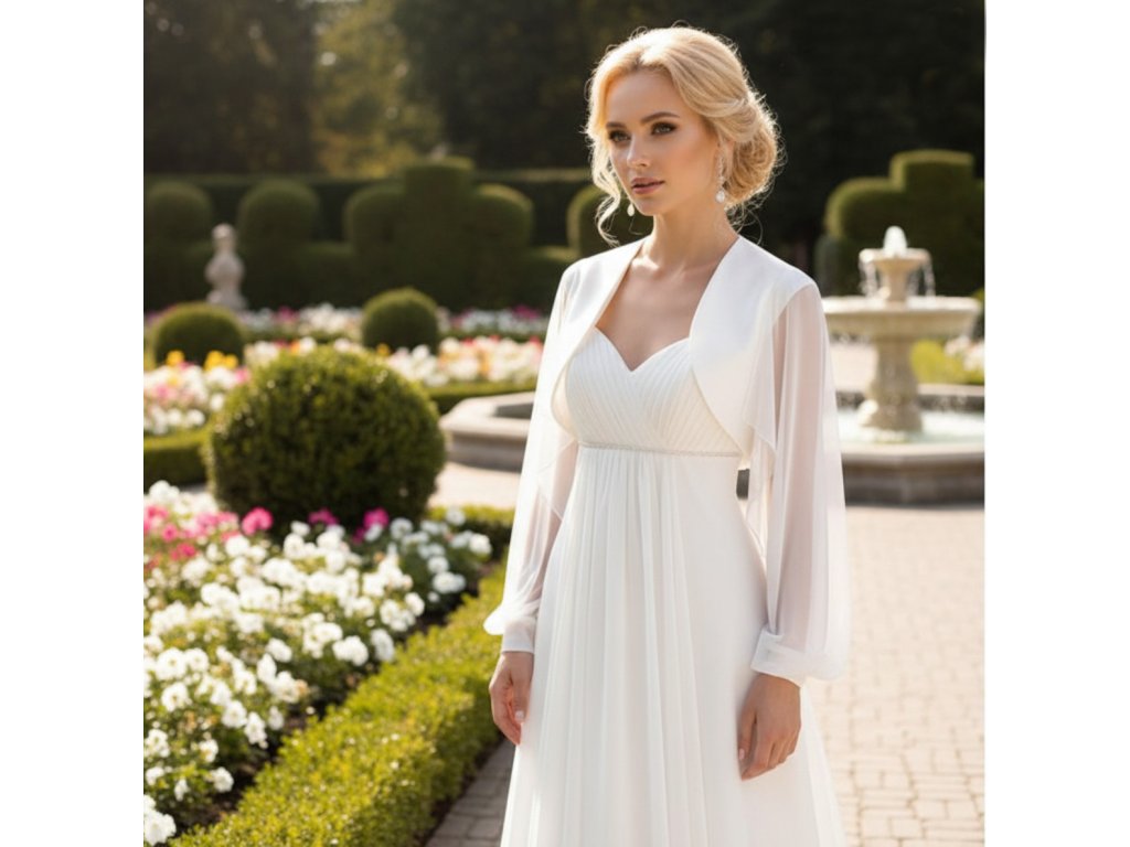 Saténové svatební bolerko s mušelínovými rukávy.