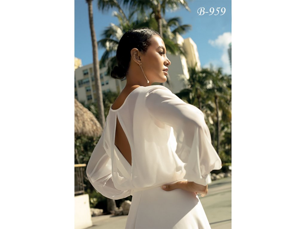 Šifonová svatební halenka s dlouhými rukávy.