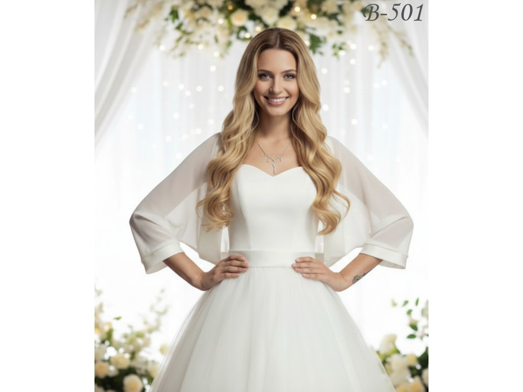 › Svatební bolerka › Šifonové svatební bolerko se saténovým lemem - bílé: B-501, vel. S/M