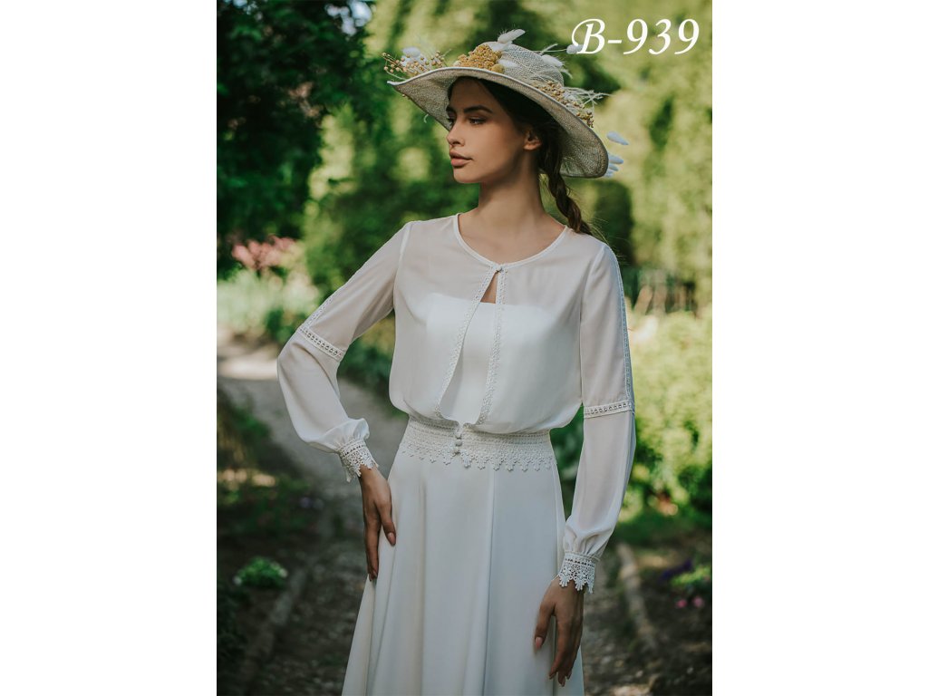 Šifonový svatební kabátek v boho stylu, lemovaný krajkou.
