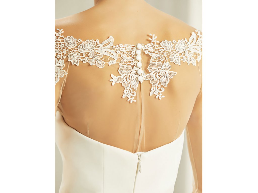 Svatební bolerko z pružného tylu, lemované krajkou.