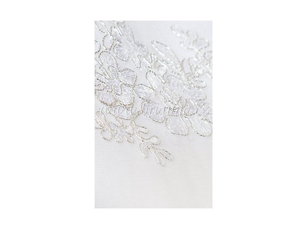 Saténové svatební bolerko se stříbrnou výšivkou.