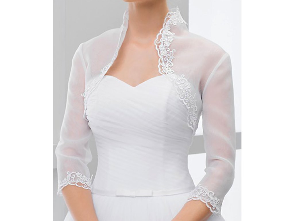 Svatební bolerko z organzy, lemované krajkou.