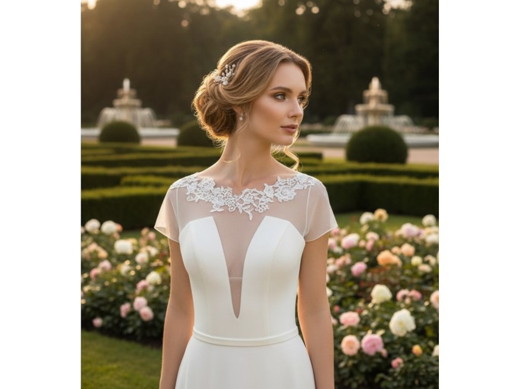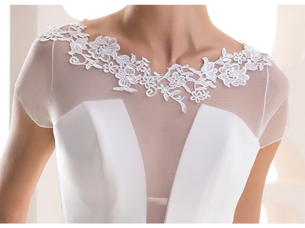 Svatební bolerko z pružného tylu, lemované krajkou.