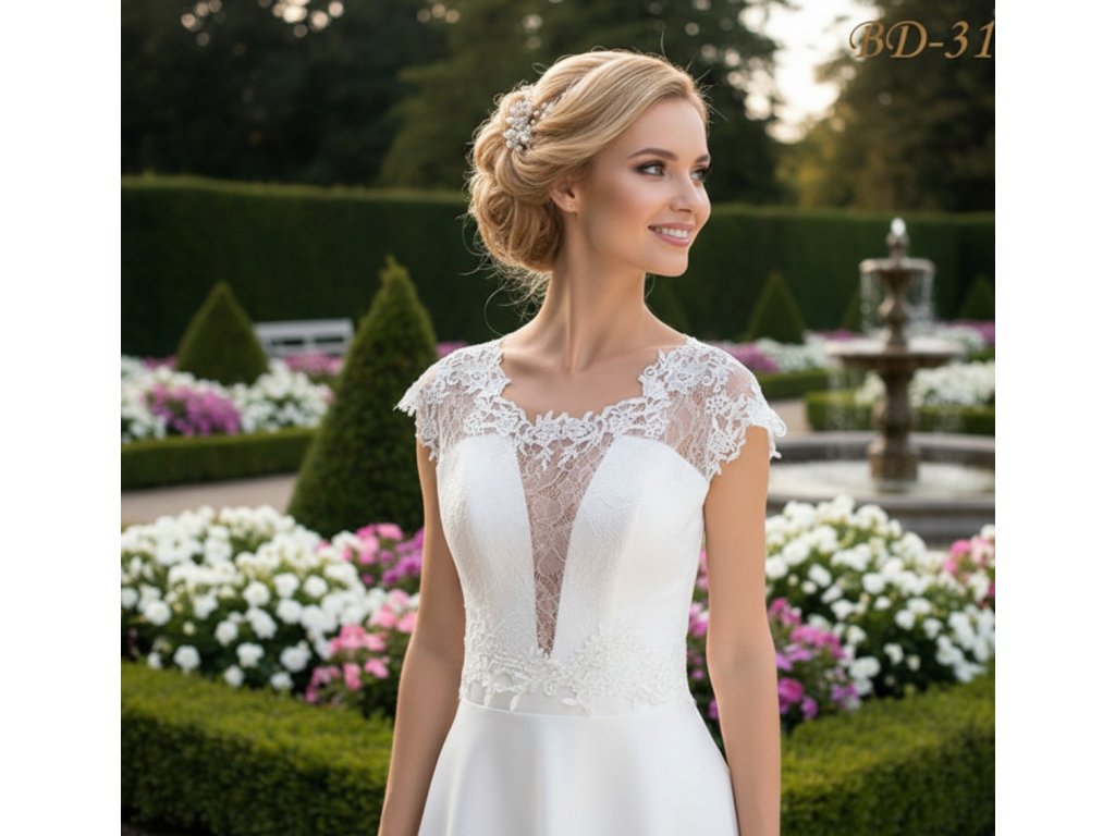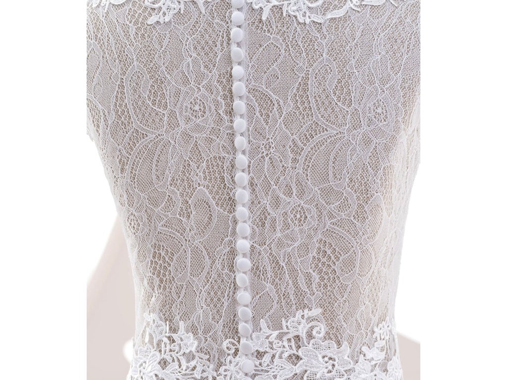 Svatební bolerko zdobené květinovou krajkou.