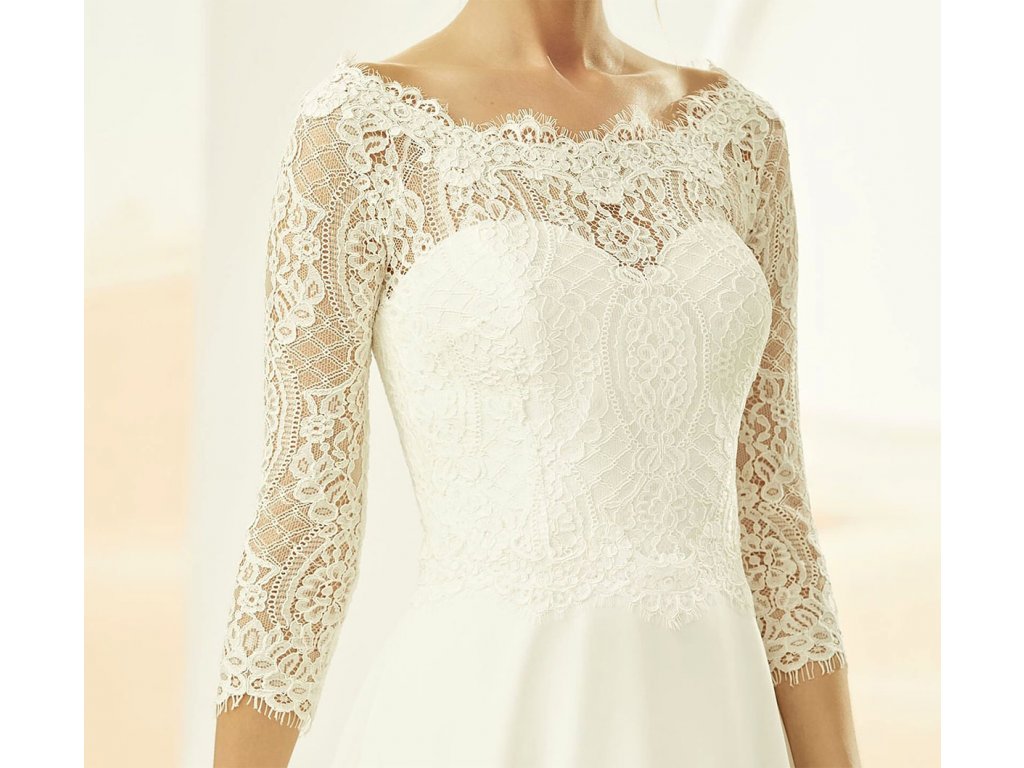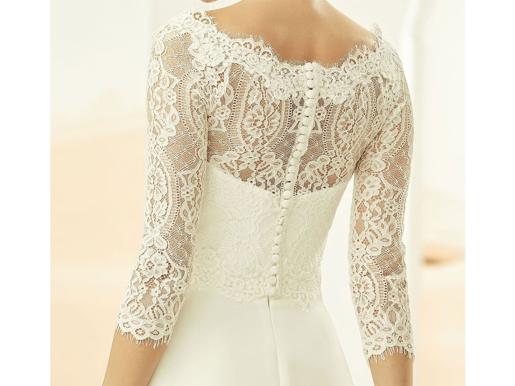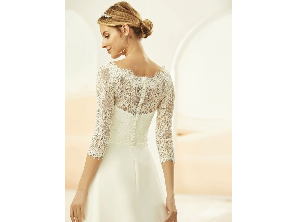 Svatební krajkový kabátek s lodičkovým výstřihem a 3/4 rukávy.